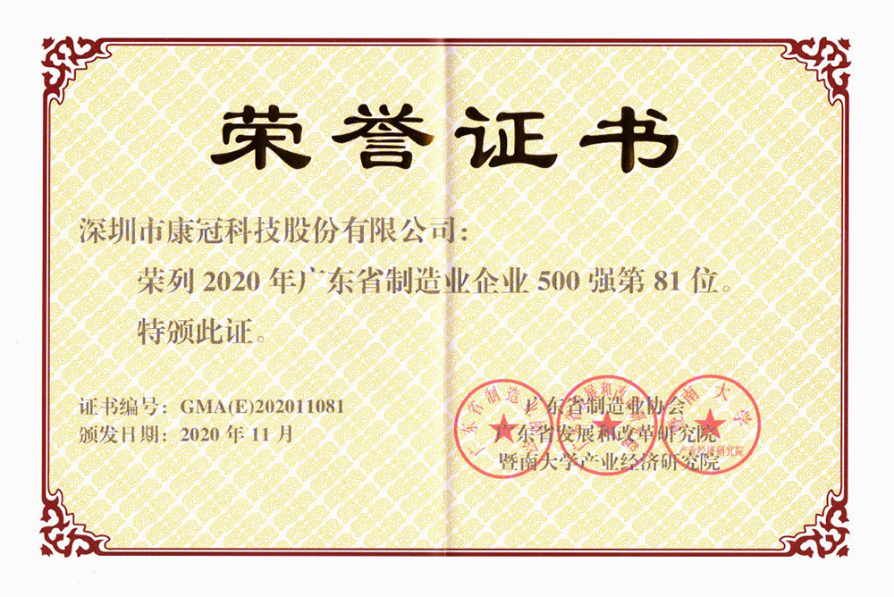Lors de la conférence, la liste des « 500 meilleures entreprises manufacturières de la province du Guangdong en 2020 » a été publiée. Grâce à sa forte puissance de production et à sa part de marché importante, Shenzhen KTC Technology Group a été récompensée cette année par le titre de « 500 premières entreprises manufacturières du Guangdong », occupant la 81e place, après avoir figuré sur la liste deux années consécutives en 2018 et 2019.