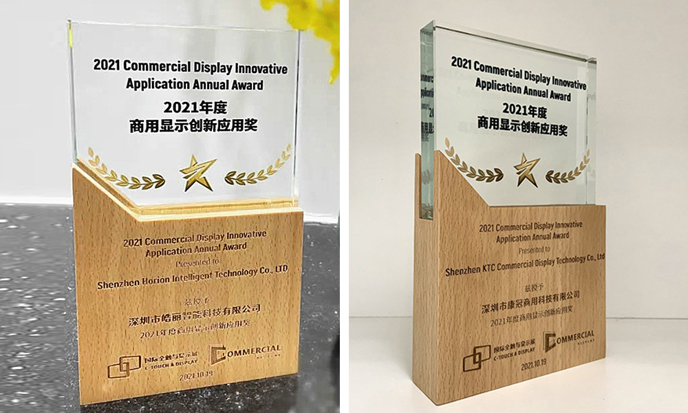 Lors du forum au sommet de l'Exposition internationale C-TOUCH & DISPLAY SHENZHEN 2021 qui s'est tenu le premier jour de l'exposition, KTC Commercial Display Technology Co., Ltd. et Horion Intelligent Technology Co., Ltd. ont remporté le Prix d'application innovante d'affichage commercial, démontrant que l'innovation de KTC dans les produits et la technologie d'affichage commercial a été pleinement reconnue et affirmée !