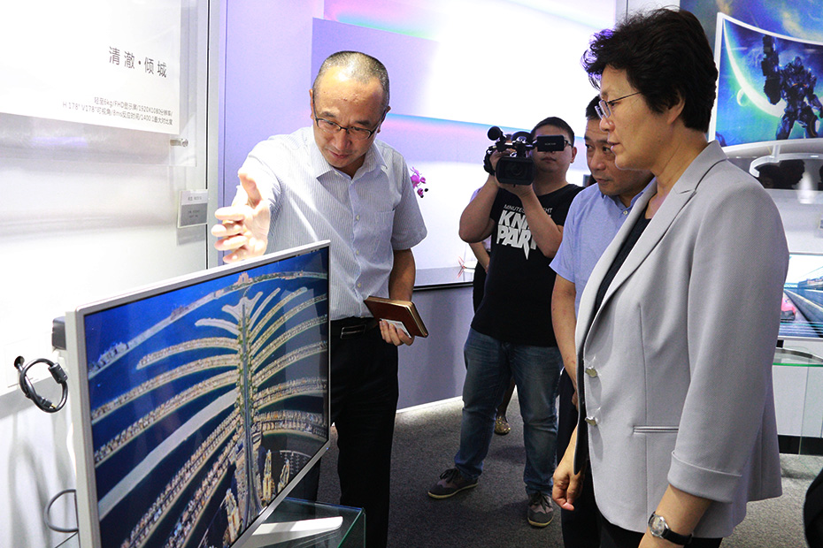 蔡书记一行参观了mk体育公司展厅、办公区及园区环境。调研中,蔡书记等领导及青年企业家们重点了解mk体育公司产品功能与特色、研发实力及产能情况,在全方位的观赏、体验之下,对mk体育公司平板显示产品及科技研发、智能化水平给予了高度赞赏与认可。
