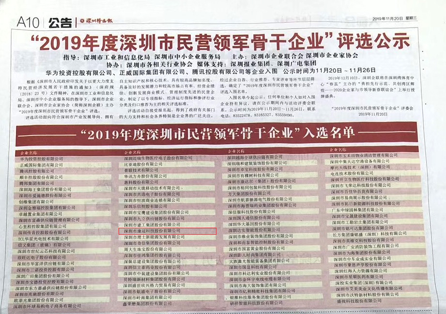 11月20日,在深圳市工业和信息化局、深圳市中小企业服务局的指导下,深圳市企业联合会、深圳市企业家开展民营领军骨干企业评选活动,公布并表彰了一批重质量、讲诚信、树品牌、高绩效的卓越企业,mk体育荣列其中,并被授予“深圳市民营领军骨干企业”称号。