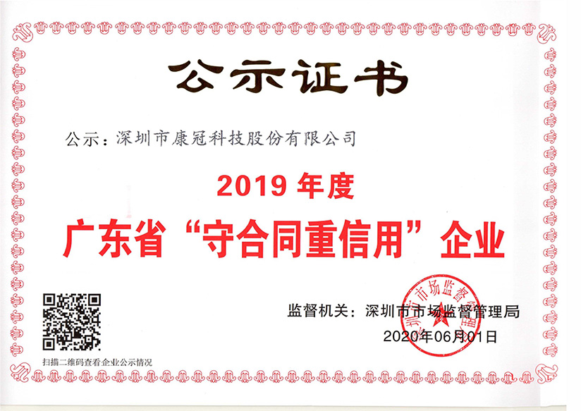7月15日,2019年度广东省“守合同重信用企业”公示活动结束,mk体育集团旗下深圳市mk体育、mk体育商用科技、惠州市mk体育、深圳市皓丽智能、深圳市mk体育医疗等5家公司上榜“守重”公示系统,荣获2019年度广东省“守合同重信用企业”称号。