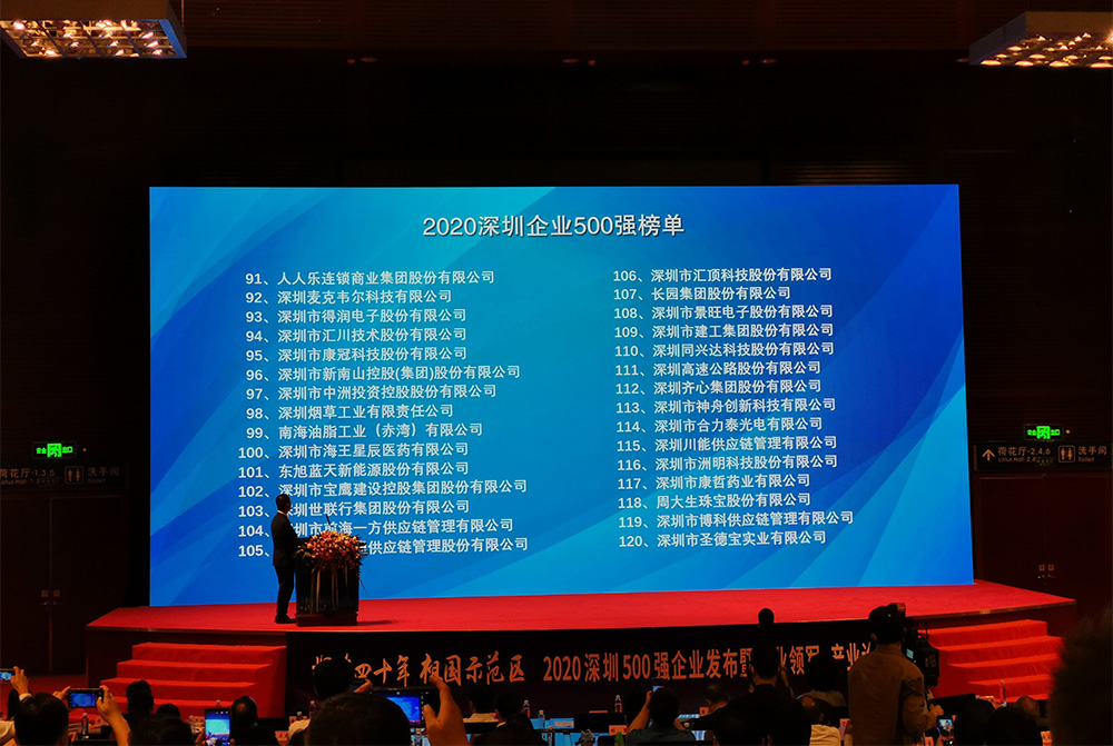 10月20日下午,深圳市企业联合会、深圳市企业家在深圳市会展中心召开了“辉煌四十年,祖国示范区”2020深圳500强企业发布暨行业领军·产业论坛,发布2020深圳500强企业榜单,mk体育公司荣誉上榜,位列榜单第95名,较2019年提升14名。