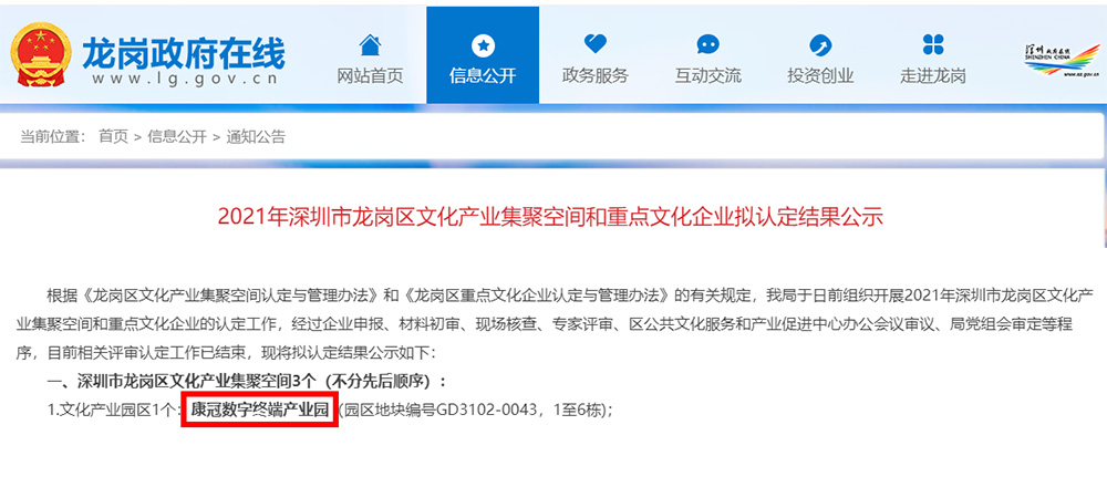 近期,龙岗区文化广电旅游体育局根据《龙岗区文化产业集聚空间认定与管理办法》有关规定,进行了2021年深圳市龙岗区文化产业集聚空间的公示,深圳mk体育公司运营的“mk体育数字终端产业园”被认定为文化产业园区。