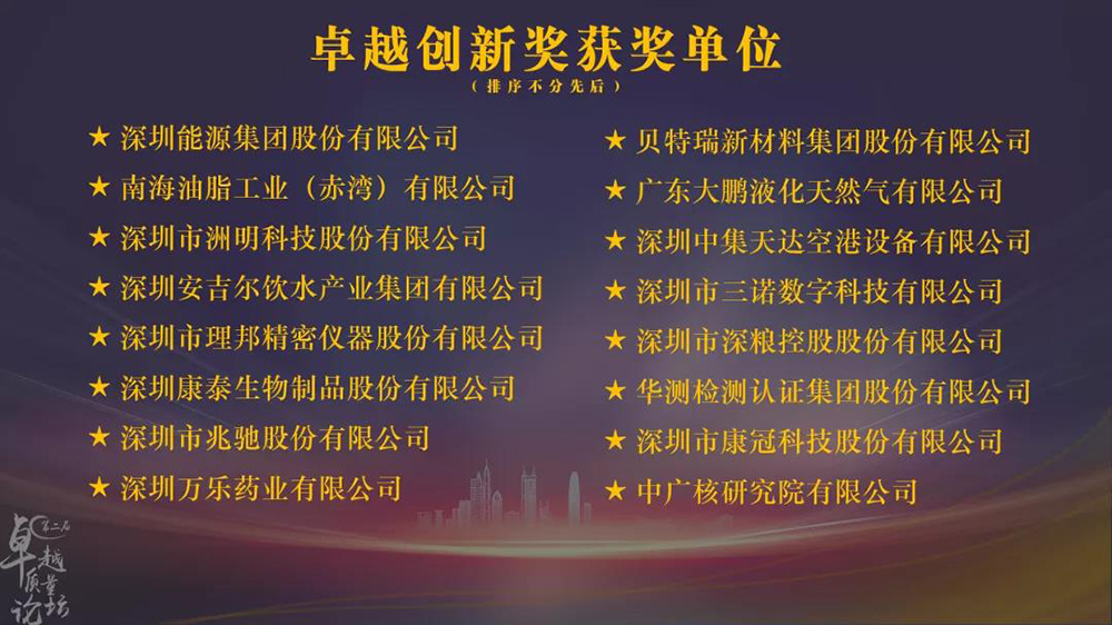 9月9日下午,第二届卓越质量论坛在深圳成功举办,此次论坛由深圳市市场监督管理局指导,由深圳市卓越绩效管理促进会、深圳质量创新技术联盟主办。论坛举办了推行卓越绩效模式颁奖盛典,mk体育公司以突出的创新优势荣获2020年度卓越创新奖。