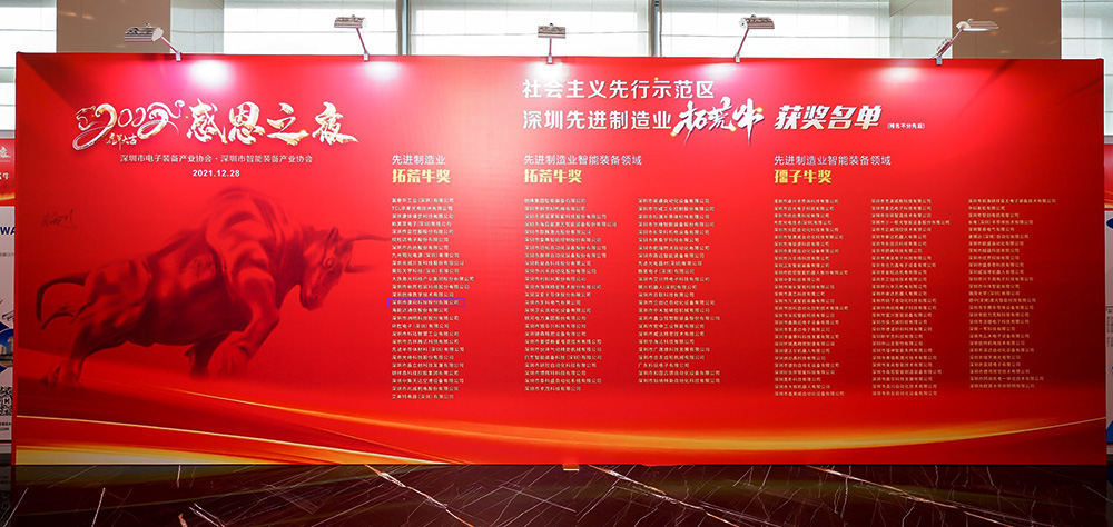 12月28日,由深圳市电子装备产业协会、深圳市智能装备产业协会举办的2022深圳市电子、智能装备产业协会感恩之夜暨“深圳先进制造业拓荒牛”颁奖盛典在深圳国际会展中心希尔顿酒店举办。在活动现场,mk体育公司荣获社会主义先行示范区“深圳先进制造业拓荒牛”奖。