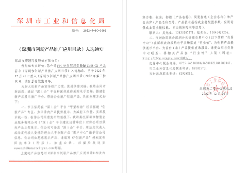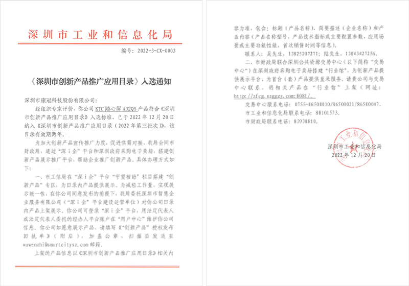 近期,深圳市工业和信息化局发布《深圳市创新产品推广应用目录(2022年第三批次)》,MK体育·(国际)官方网站 - mksport的KTC随心屏、FPD智能屏显美妆镜成功入选该目录,并成为政府机构采购推荐产品。
