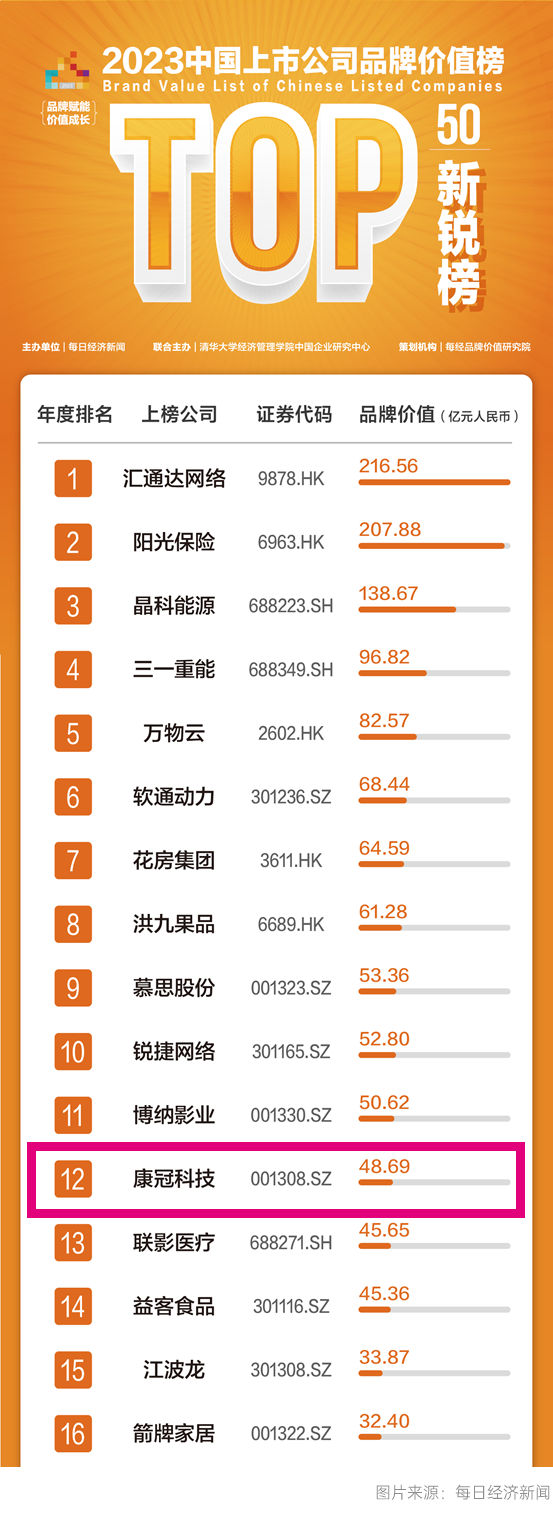 5月9日下午,由每日经济新闻发起、清华大学经济管理学院中国企业研究中心联合主办的“2023第七届中国上市公司品牌价值榜发布会”在北京举行,mk体育实力入选新锐榜TOP50。