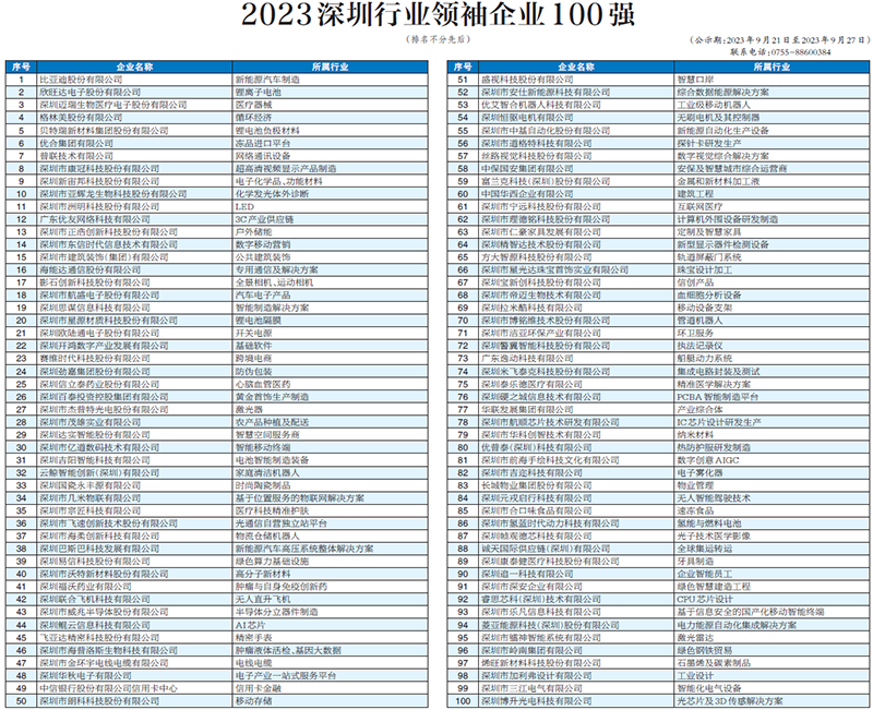 (以下为2023深圳行业领袖企业100强完整榜单)