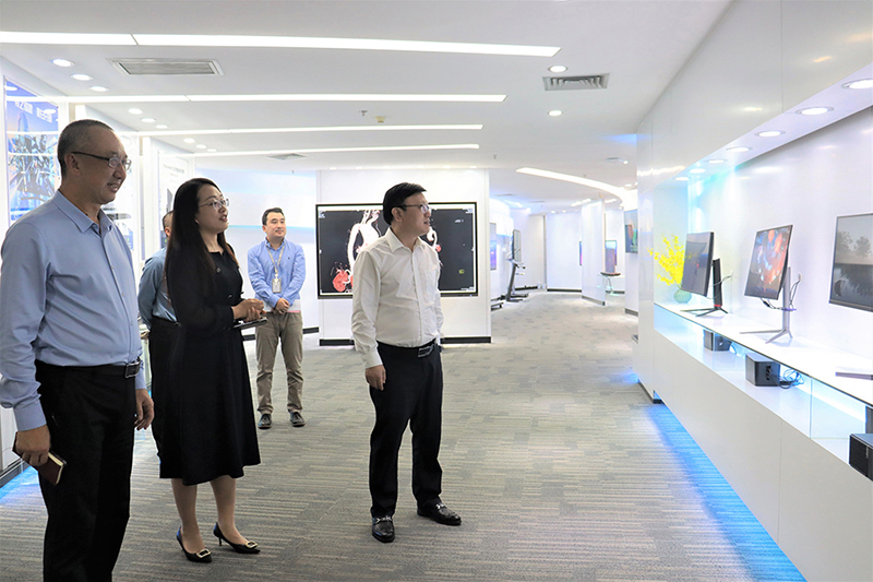 3月26日下午,龙岗区检察院李荣斌检察长一行莅临mk体育参观调研,mk体育董事长凌斌率队接待。在凌斌董事长的陪同下,李荣斌检察长一行首先参观mk体育坂田产业园模型及展厅,了解了mk体育坂田园区建设情况和最新显示产品。