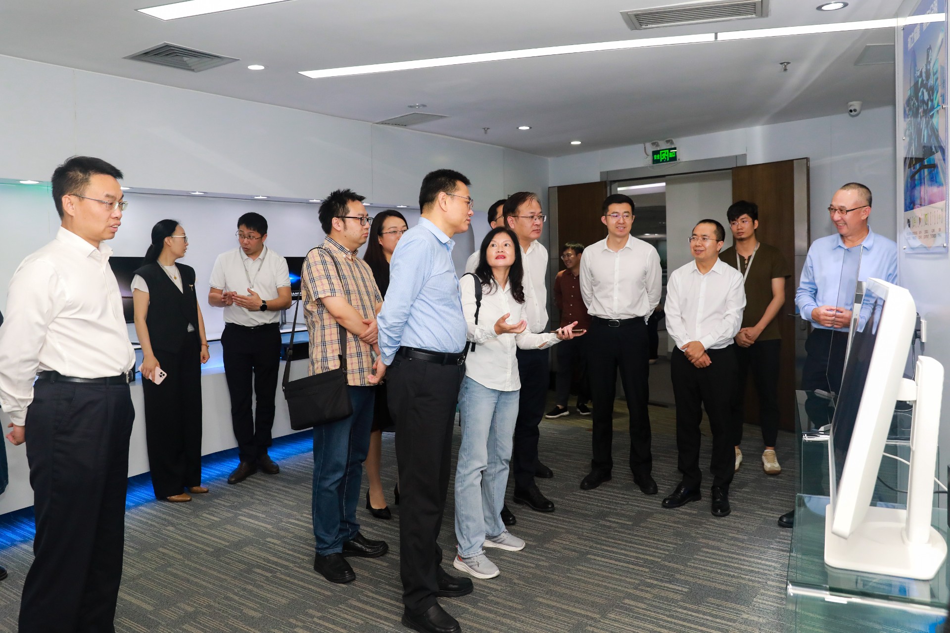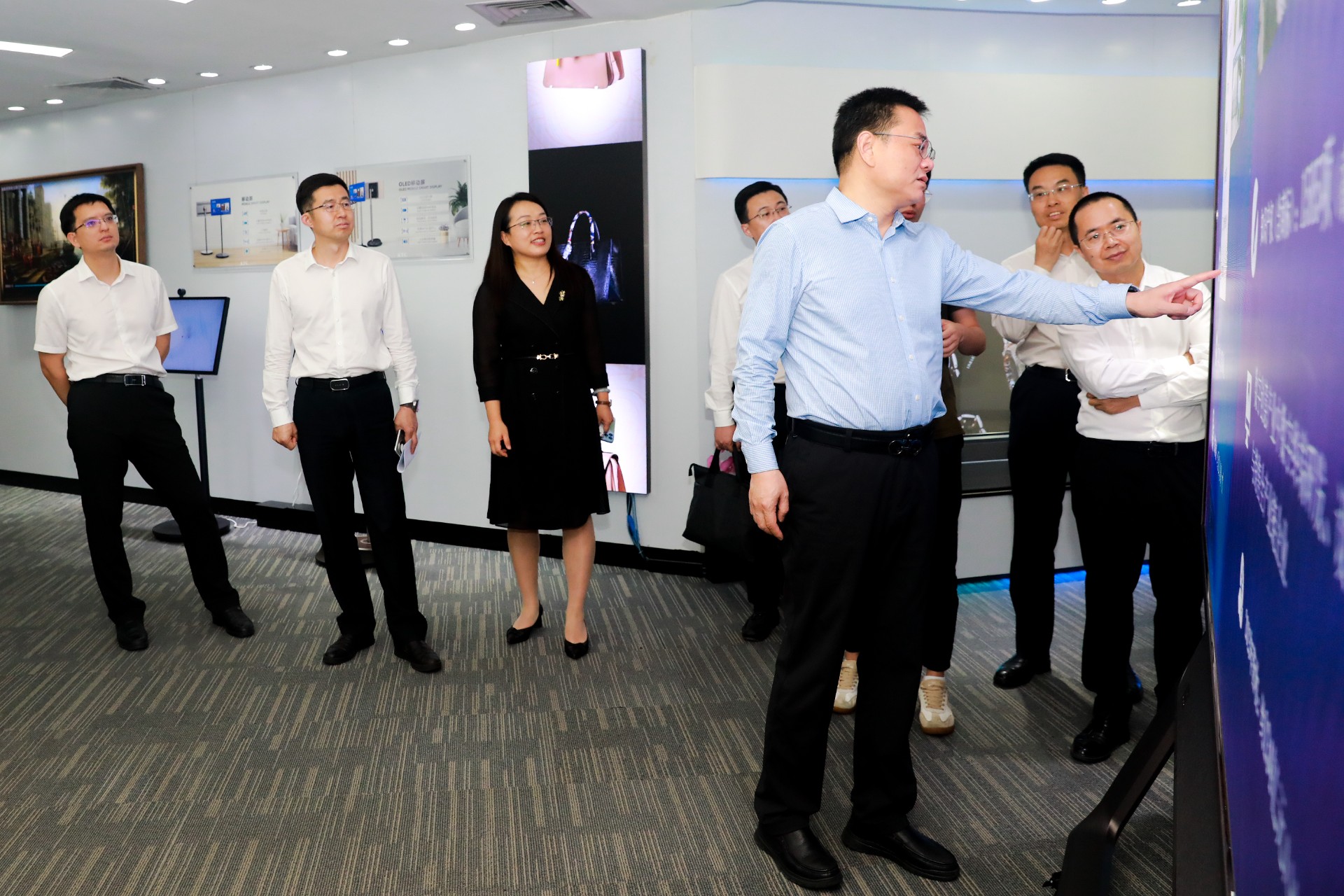在调研过程中,李斌厅长一行领导听取了企业发展情况汇报,了解mk体育显示产业布局和未来发展蓝图。来到mk体育展厅,凌斌董事长向一行领导介绍了mk体育以“科技美学”为开发理念,展现数字科技与文化创意融合发展的数字终端产品及其文化应用场景。李斌厅长对mk体育在数字终端领域的实力与未来发展潜能表示肯定与期待。