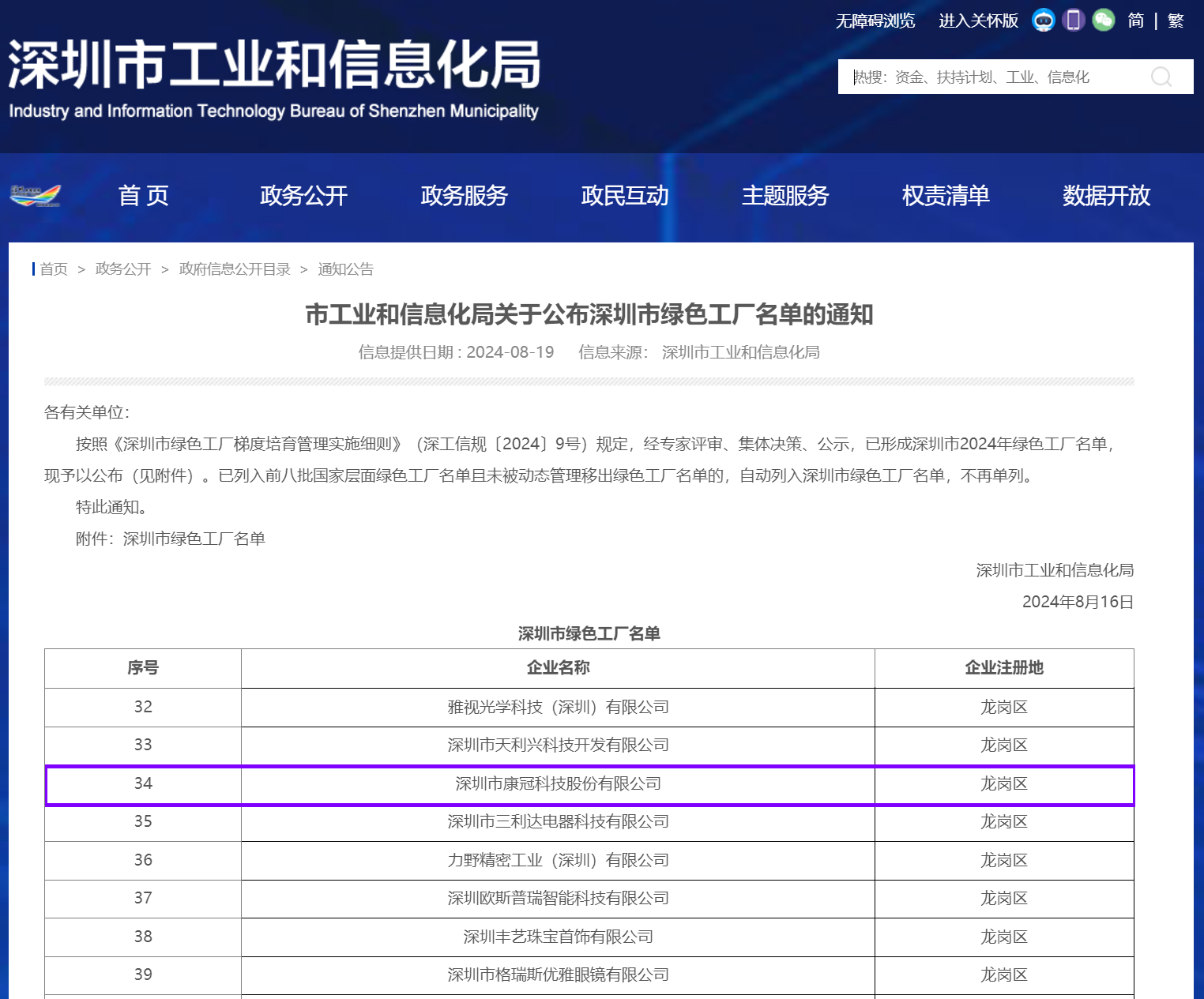 8月16日,深圳市工业和信息化局公布2024年度深圳市绿色工厂名单,MK体育·(国际)官方网站 - mksport入选名单,彰显mk体育以切实行动引领产业绿色发展,积极践行绿色理念,充分履行社会责任。此荣誉的获得,标志公司在可持续发展道路上迈出了坚实的一步。