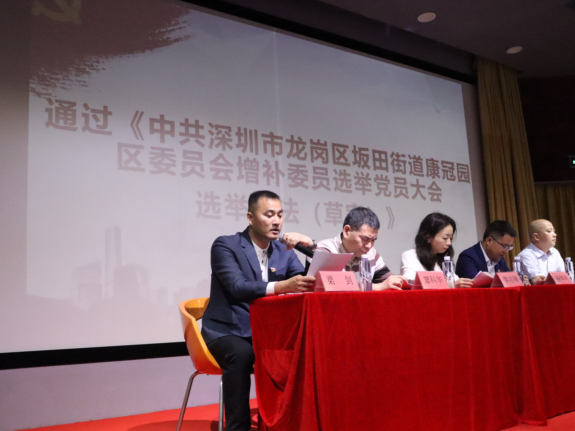 增补委员选举党员大会严格按照《中国共产党章程》《中国共产党基层组织选举工作条例》等有关规定和程序及《中共深圳市龙岗区坂田街道mk体育园区委员会增补委员党员大会选举办法(草案)》的有关要求开展选举。