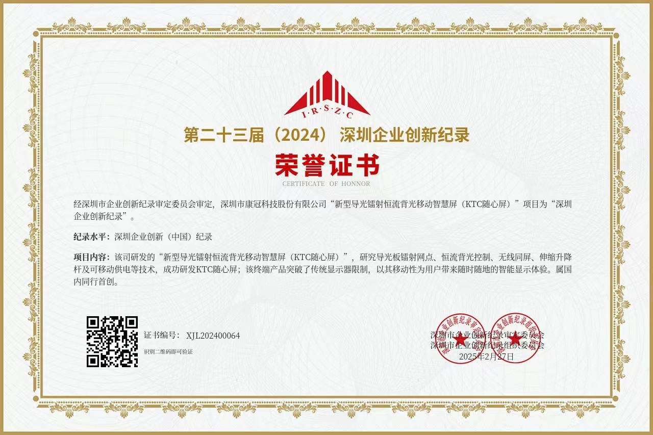 随后,在第二十三届“深圳企业创新纪录”审定发布活动上,mk体育荣获“自主创新标杆企业”称号。项目“新型导光镭射恒流背光移动智慧屏(KTC随心屏)”获得“深圳企业创新纪录”,并达到“深圳企业创新(中国)纪录”水平。